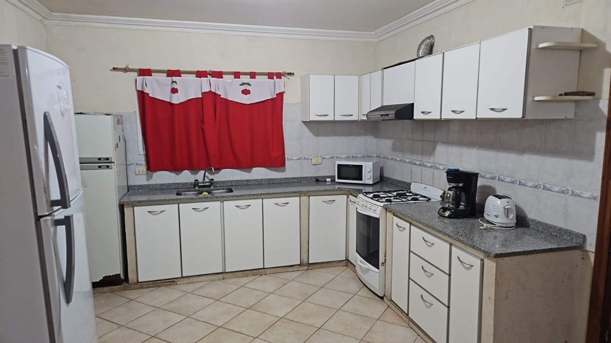 Excelente propiedad, ideal por sus comodidades, y súper accesible es su valor por lo que es esta propiedad te cuento: Posee una cocina comedor, equipada bien equipada, vajilla completa y demás electrodoméstico, heladera con frezzer, 1 LCD, de 32" con cable, Posee servicio de WIFI. Un lavadero con lavaropa de paleta, desde el balcón hermosa vista del mar a una altura de 6 Mts desde el nivel de la calle, posee 4 dormitorios, el dormitorio principal con TV(matrimonial) con placard y baño en suite, los otros dormitorios posee camas simples con placares, en total 3 baños posee la propiedad, un gran patio con un deck de 40 mts aprox. Con parrilla y bajando a la cochera cubierta para 1 vehículos y semicubierta para 2 vehiculos. La propiedad POSEE REJAS EN TODAS LAS ABERTURAS. Cualquier novedad comunícate con nuestra oficina, a la brevedad,
