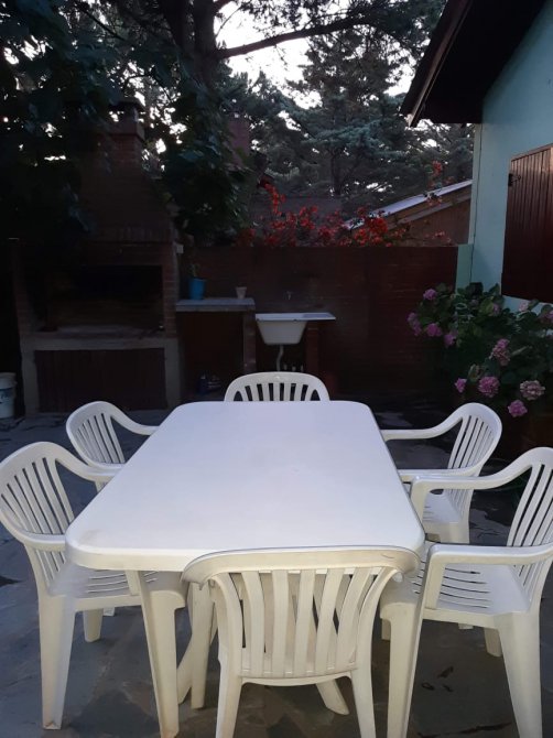 Excelente propiedad, ideal por sus comodidades para 10 personas, y súper accesible es su valor por lo que es esta propiedad (ver las fotos) te cuento: Posee una cocina comedor heladera C/freezer, microondas, sanwichera, tostadora, DVD, computadora c/Internet, ventiladores, lavarropas automatico ALARMA MONITORIADA, Living amplio con 2 LCD c/ cable, hay 4 dormitorios de los cuales hay 2 que son matrimoniales, otro 2 dormitorios C/camas simples, y un playRoom c/2 sofas camas simples, 3 baños completos (grandes), uno externo en el quincho c/parrilla para su deleite con mesa y sillas, con un patio, Su cochera cubierta para su vehículos o guardar motos de agua cuatriciclos. y posee tambien otro quincho para guardar mas. Cualquier novedad comunícate con nuestra oficina, a la brevedad, por la gran demanda que poseemos en esta fecha