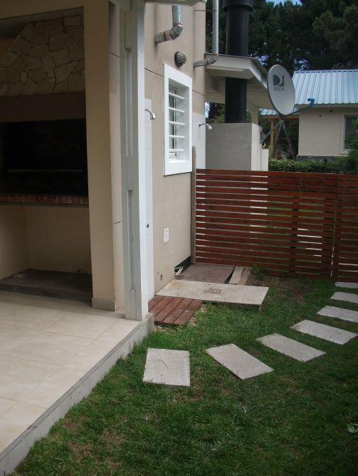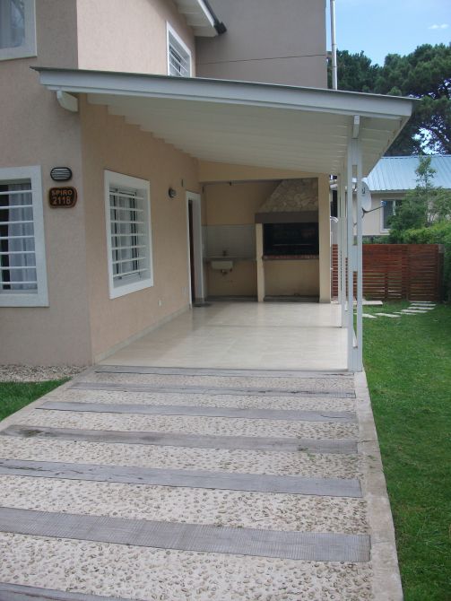 2 baños (uno completo), tiene un alero con parrilla en la salida de la cocina, ducha externa.