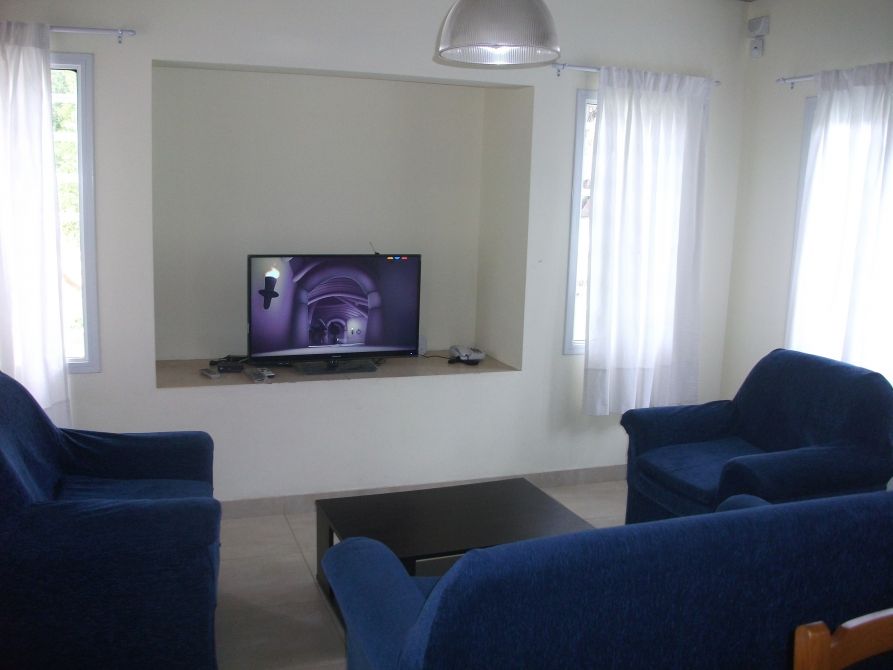 living con sillones, con un LCD 32” / con cable, un comedor diario con una mesa y sillas,