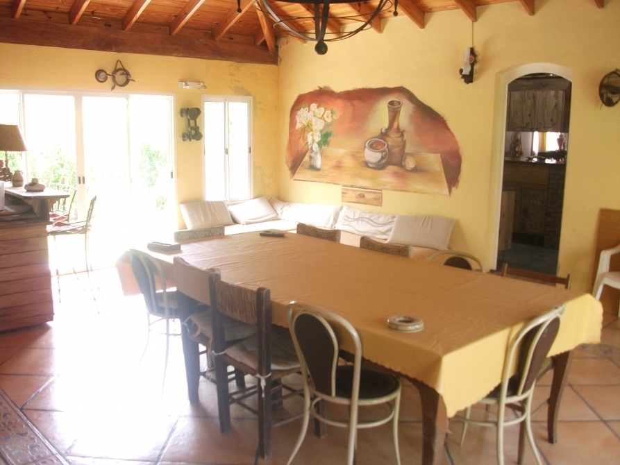Excelente propiedad , entre sus comodidades nos encontramos con una cocina completa, con microondas y heladera , living con un sillon dos cuerpos, con un LCD 32” SERVICIO DE WIFI, un comedor diario con una mesa y sillas 3 dormitorios, un matrimonial y los otros dormitorio con camas individuales, con 2 baños completos, tiene un Quincho con parrilla con una mesa larga y sillas, y lavarropa, tiene un parque con servicio de mantenimiento, La propiedad posee el servicio de ALARMA MONITORIADA.