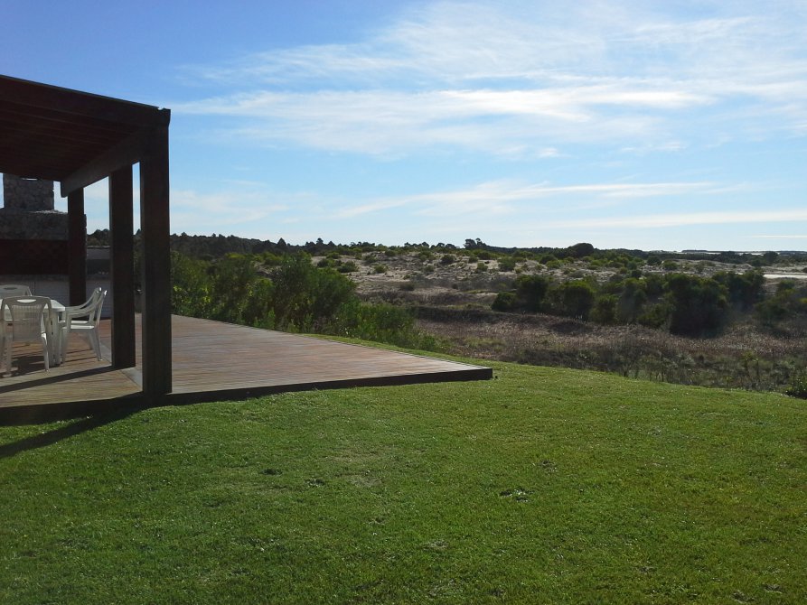 · Gran galería techada con deck de madera, con parrilla y mesada.