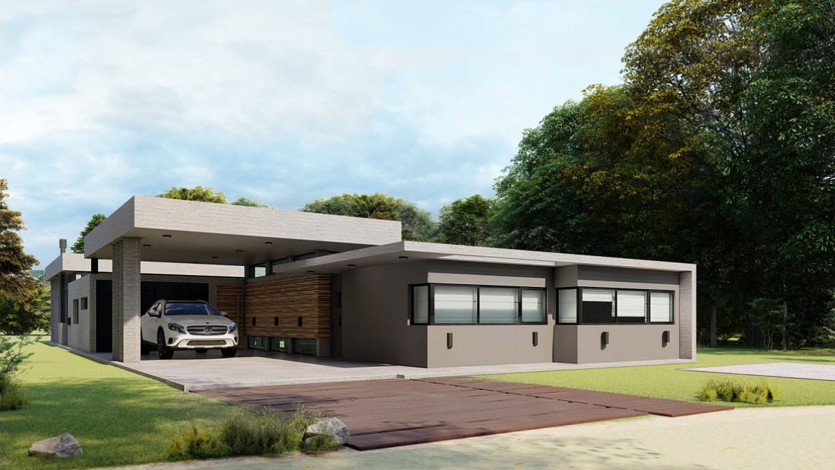 Construcción: Hormigón Armado Visto con tabla de pino eliottis cepillado en tabiques y fenólico laminado en cielorrasos.