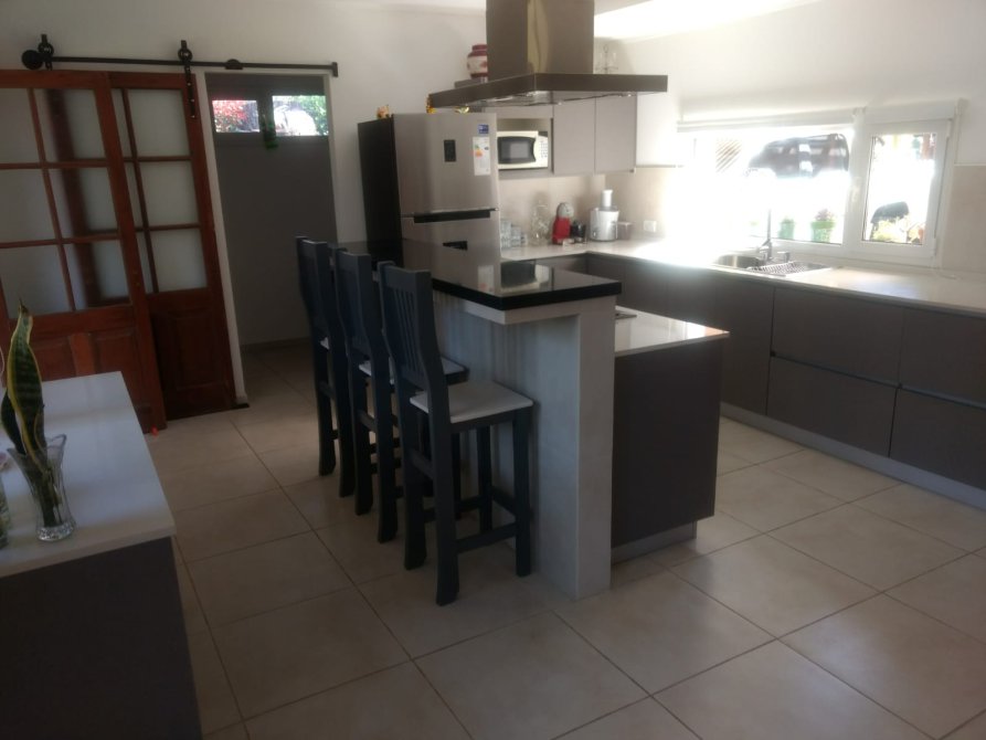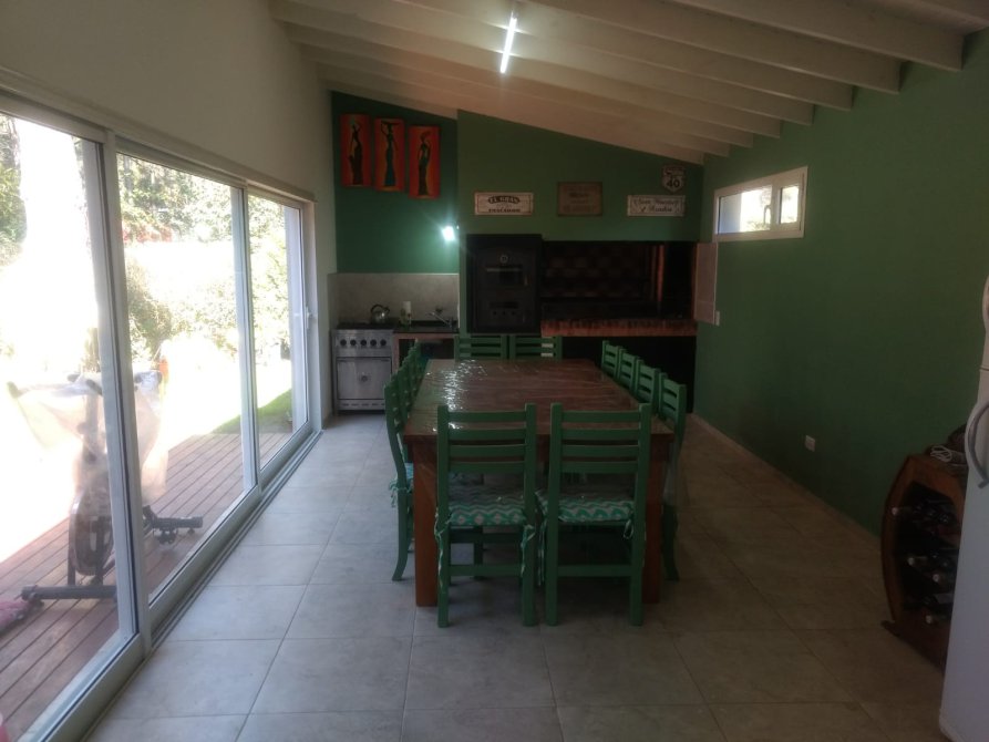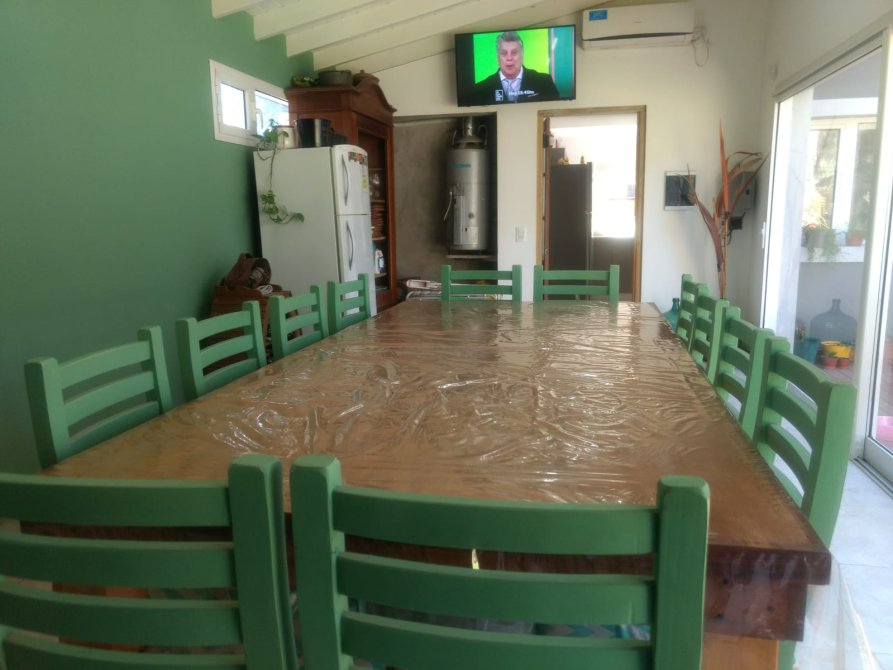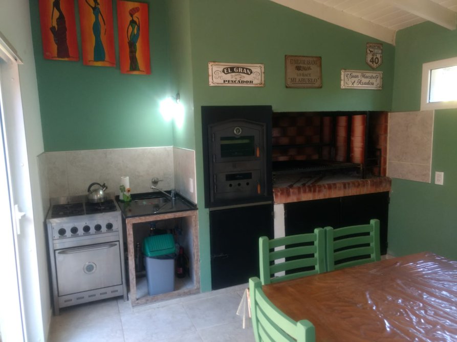Parrilla + con Horno a leña y otra cocina mas, con mesa y sillas larga en madera para el quincho