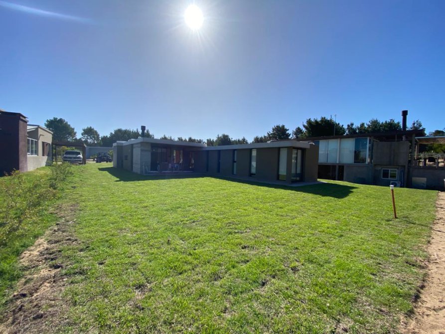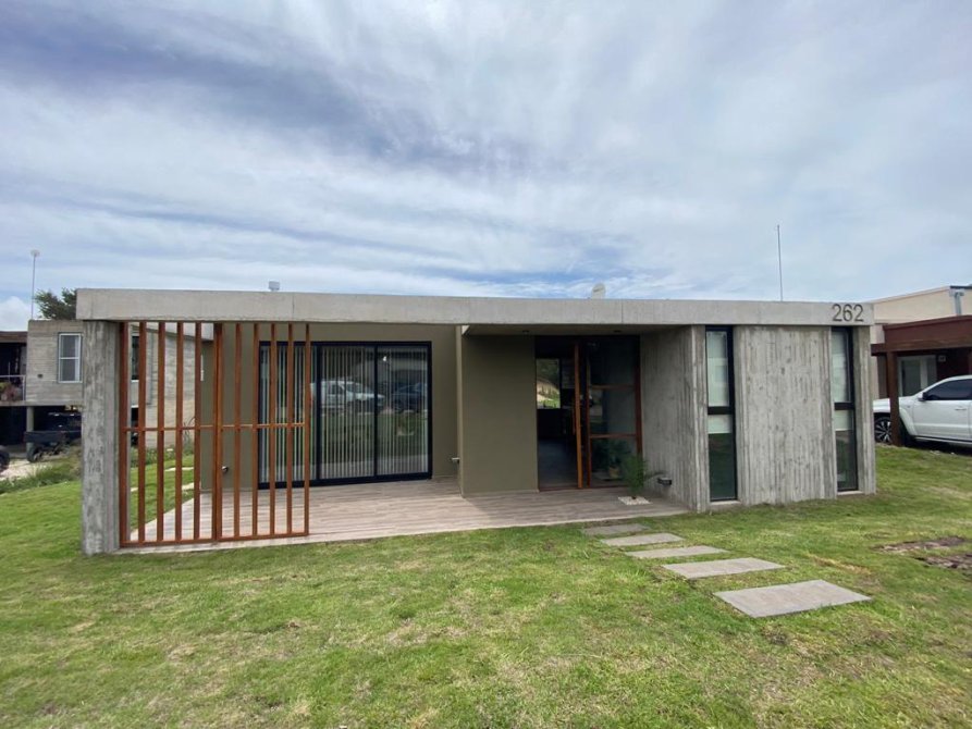 Casa a estrenar de gran calidad desarrollada en una sola planta en el Barrio GOLF 1 LOTE 262 – COSTA ESMERALDA sobre un lote de 1020 mts orientación NE. Superficie construida 187 metros.