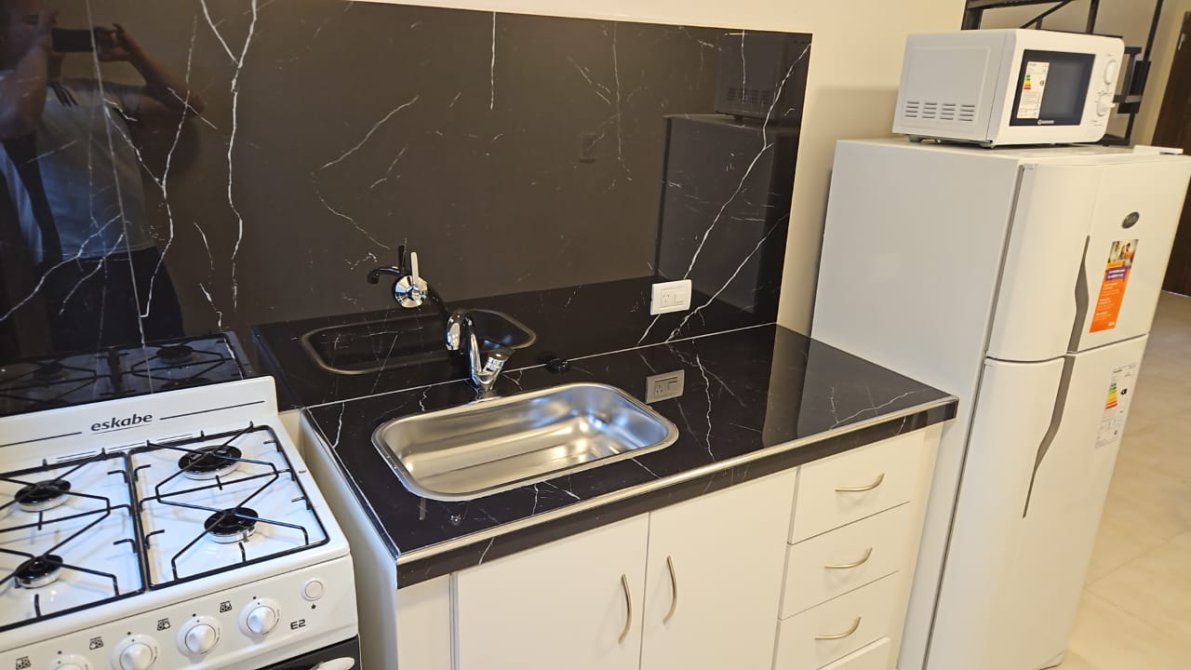 Departamento con comedor cocina integrada, y bien equipada