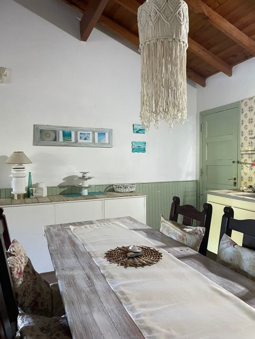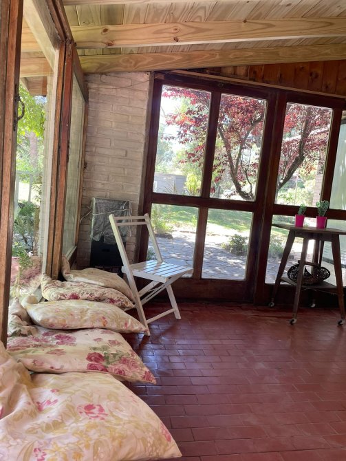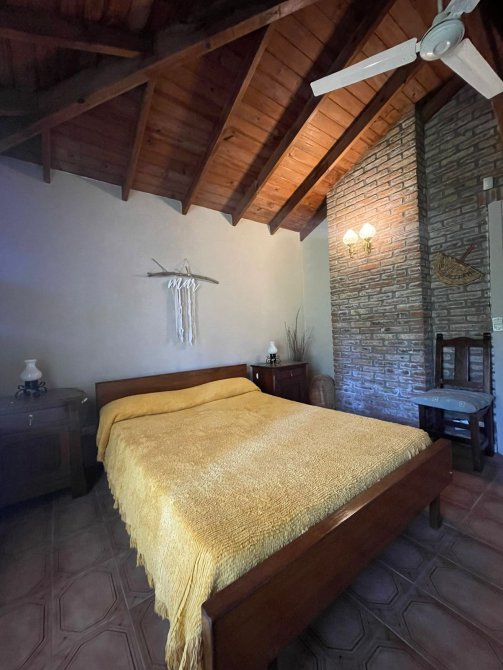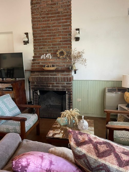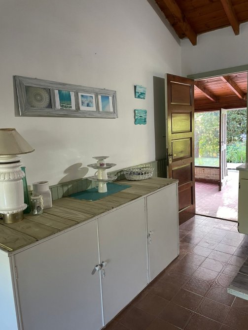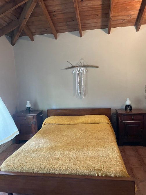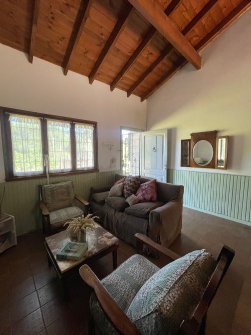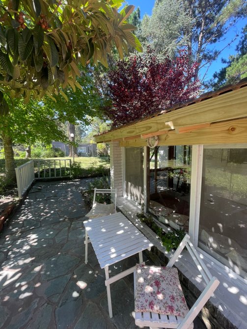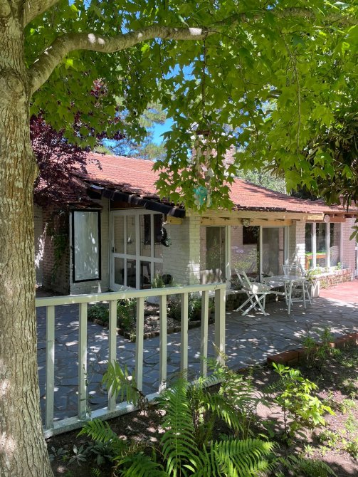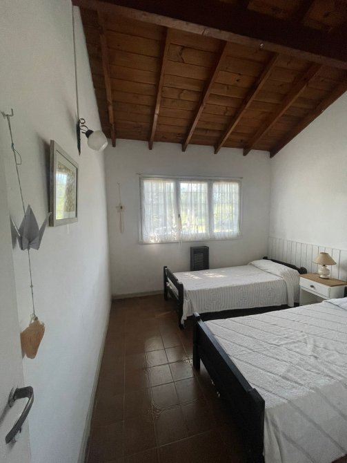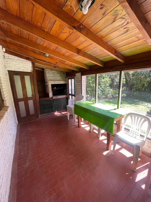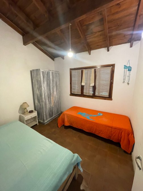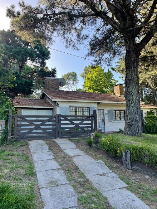 CASA (Capacidad Máxima 6 personas) Cocina, c/microondas, cafetera electrica, comedor, living, 3 dormitorios (1 matrimonial y los otros con camas individuales), 2 baño completo, galeria en madera con la parrilla techada toda vidriada, cochera descubierta al frente, parque con serv. de mantenimiento. Servicios: luz, gas natural, Cable y SERVICIO WIFI.