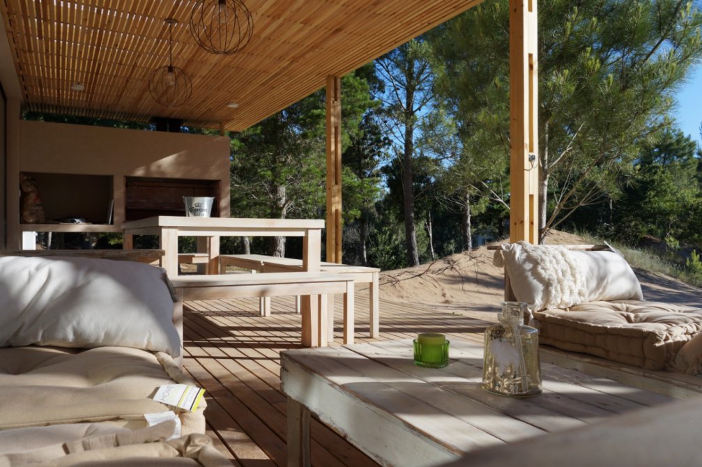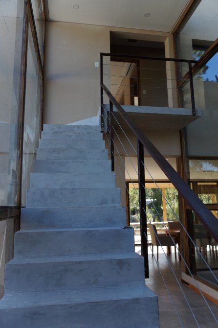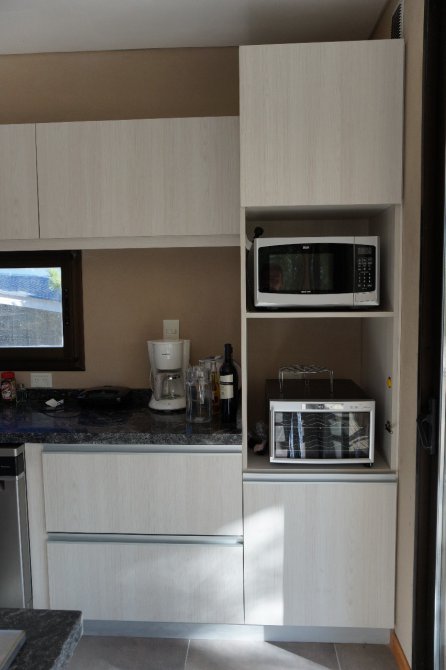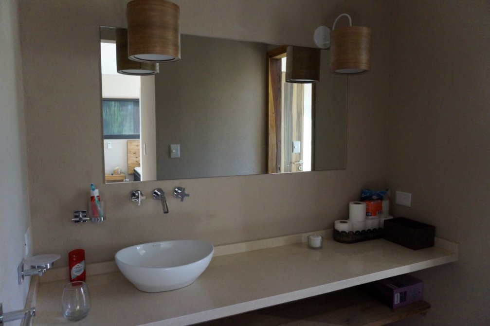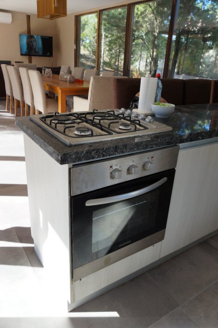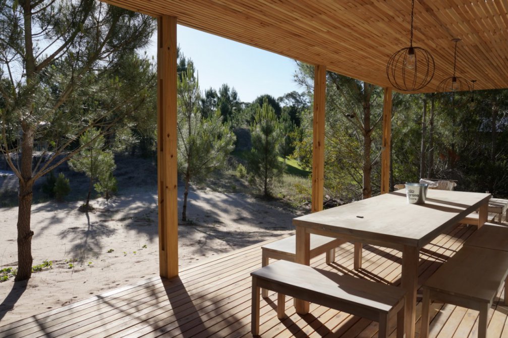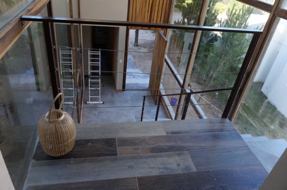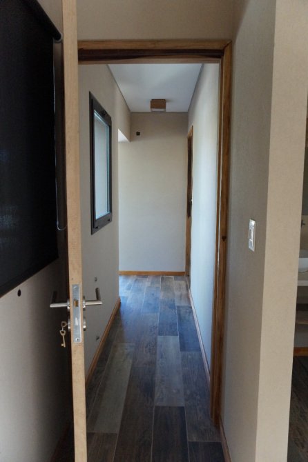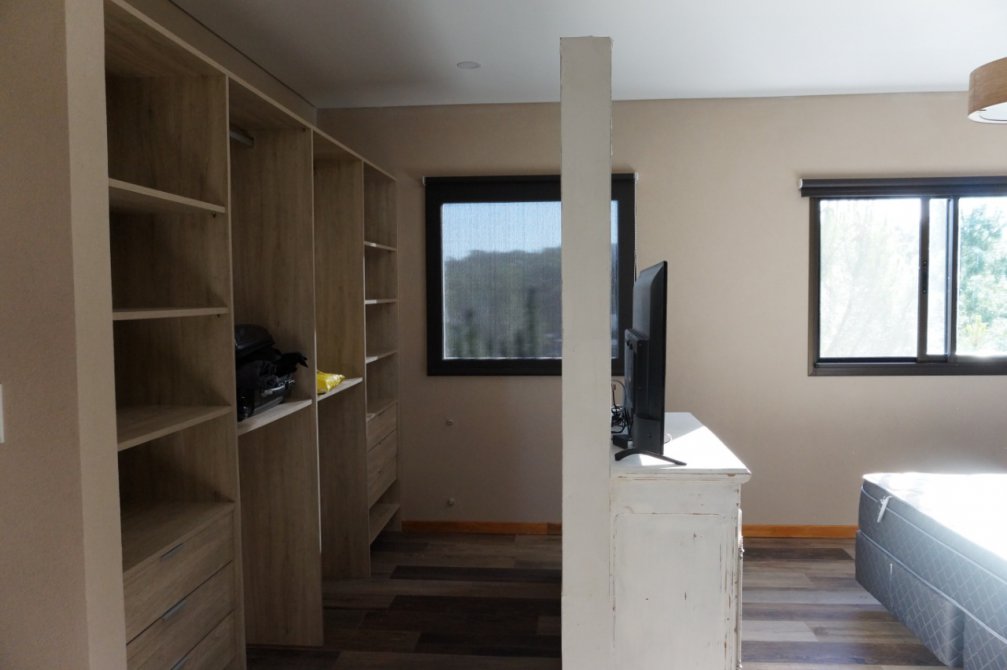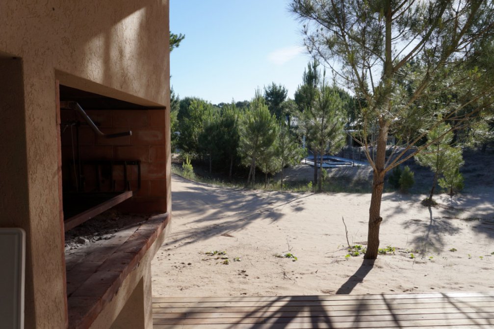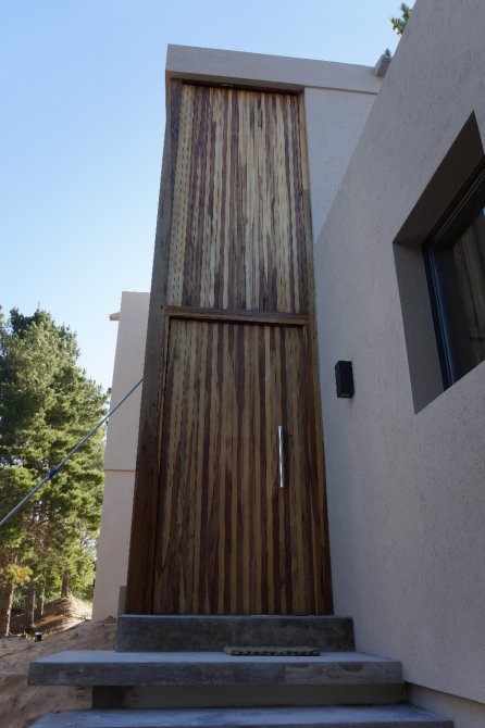 Casa moderna, a estrenar, 5 dormitorios en total: 2 en suite, uno con vestidor. Otros 2 dormitorios comparten 1 baño y otro cuarto de servicio con baño (total 5 dormitorios con 4 baños completos). Cochera doble, en la cual se encuentra el lavadero. Cocina, comedor, living integrados, vista a amplia galería con parrilla. La casa envuelve un jardín interior a través de amplios ventanales. Rodeada de pinos y plantas de la región.