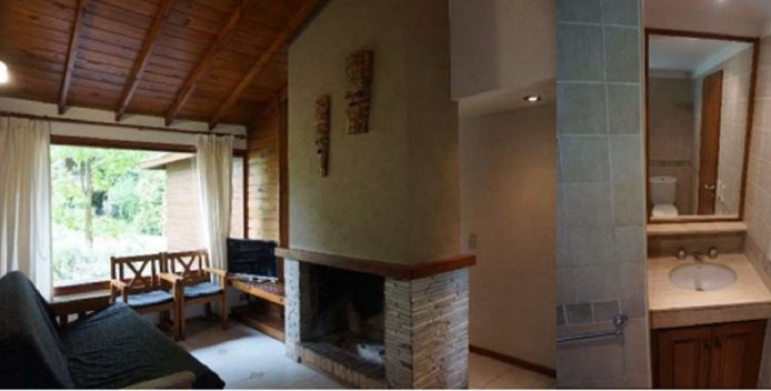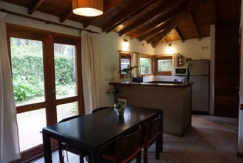 Capacidad 5 personas. 1 Dormitorio con una cama matrimonial con 1 Baño en suite, 1 Dormitorio con 1 cama cucheta y carro y 1 simple, 1 Baño, Estar-Comedor cocina integrada, Lavadero, Parrilla, Jardín . Alarma, Wifi. Están implantadas en un lote de 1800 M2.