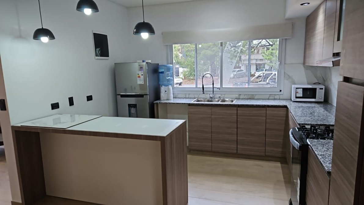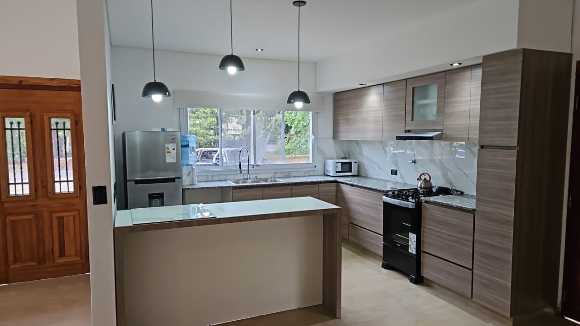 Excelente propiedad, ideal por sus comodidades para 8 personas, Posee una cocina con heladera con frezzer, microondas, lavarropa automático. Un LCD de 65” en el living, con sillones, un amplio comedor. Posee 3 dormitorios, hay 2 baños. 2 dormitorios matrimoniales, MODEM ( servicio de WIFI) y el otro dormitorio con camas simples y una doble, a la salida de cocina se encuentra la parrilla en un Deck con mesa y sillas plasticas. Su cochera es descubierta. Cualquier novedad comunícate con nuestra oficina, a la brevedad, por la gran demanda