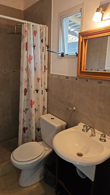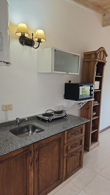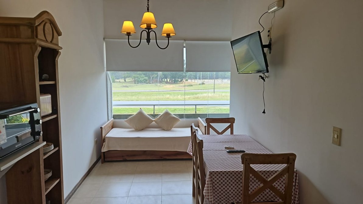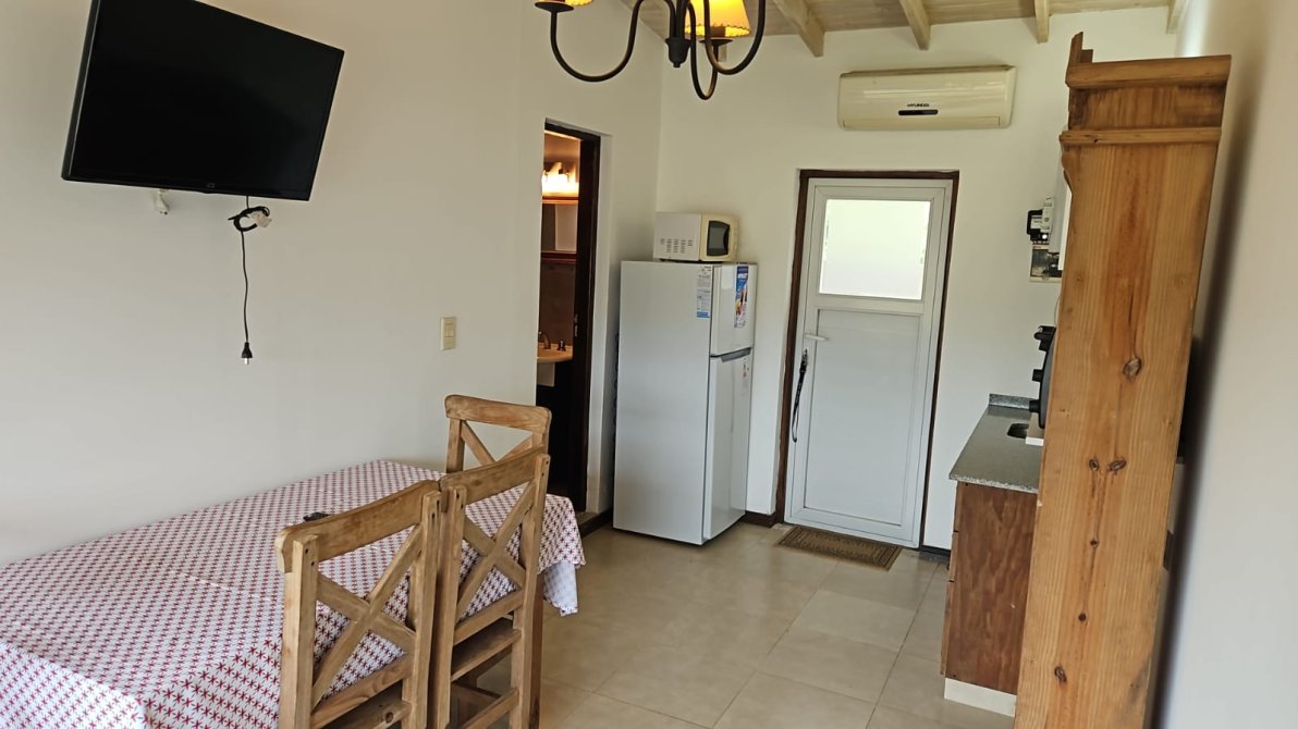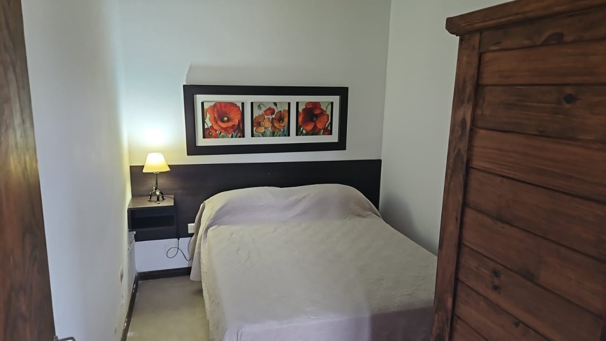 Departamento (Capacidad Máxima 4 personas) Cocina electrica, c/microondas, comedor, todo integrado una cama matrimonial, 1 baño completo, un patio con parrilla, cochera descubierta al frente, parque con serv. de mantenimiento. PISCINA EN EL VERANO COMPARTIDA Servicios: luz.